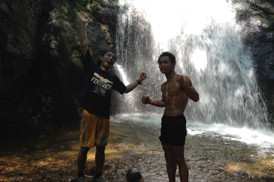 2人ともコースを知らないので、往路は私が頑張って速いペースでひっぱり、滝に到着。